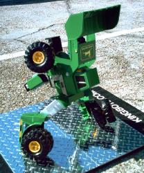 Here's a little project I ventured on about 8 years ago to pay tribute to Tonka, Transformers and John Deere all in one shot. I started with a classic Tonka front-loader and scratch-built everything else to achieve a transformable John Deere version of G-1 Scrapper. I was very pleased with the outcome despite the challenge it presented. I sold this figure to a TF fan in Kentucky that actually owned a John Deere tractor as well. Perfect match!